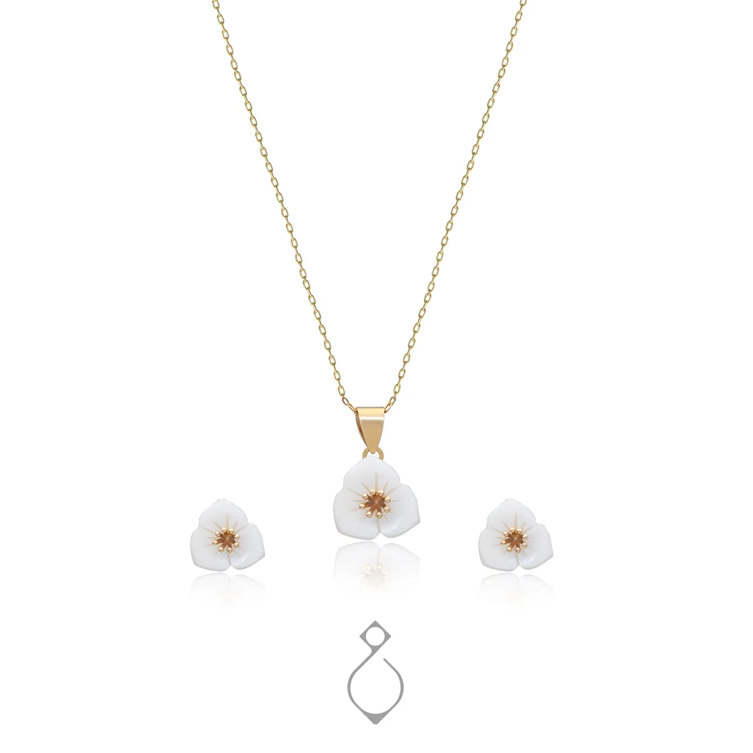 نیم ست طلا ظریف طرح ارکیده سفید کد 115 عدد