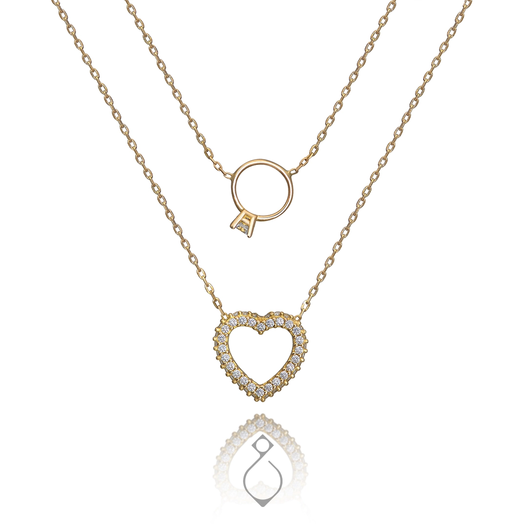 گردنبند طلا ظریف طرح قلب و حلقه کد 147 عدد