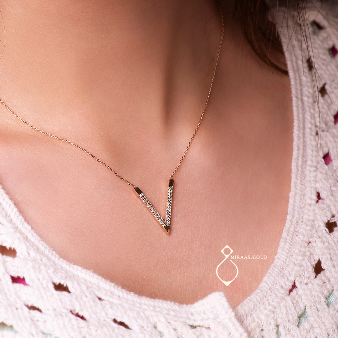 گردنبند طلا ظریف طرح وی شاین کد 156 عدد