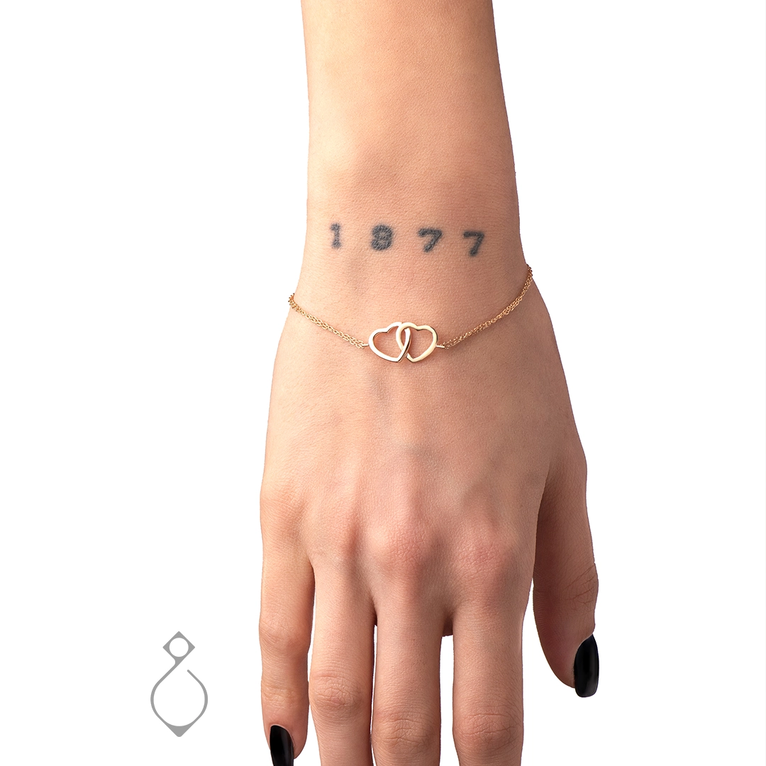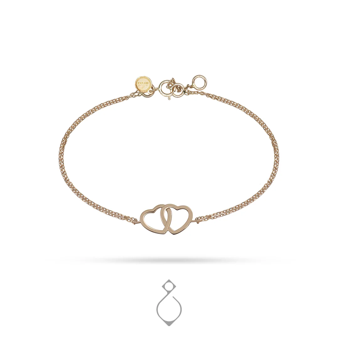 دستبند ظریف طلا طرح دو قلب کد 111
