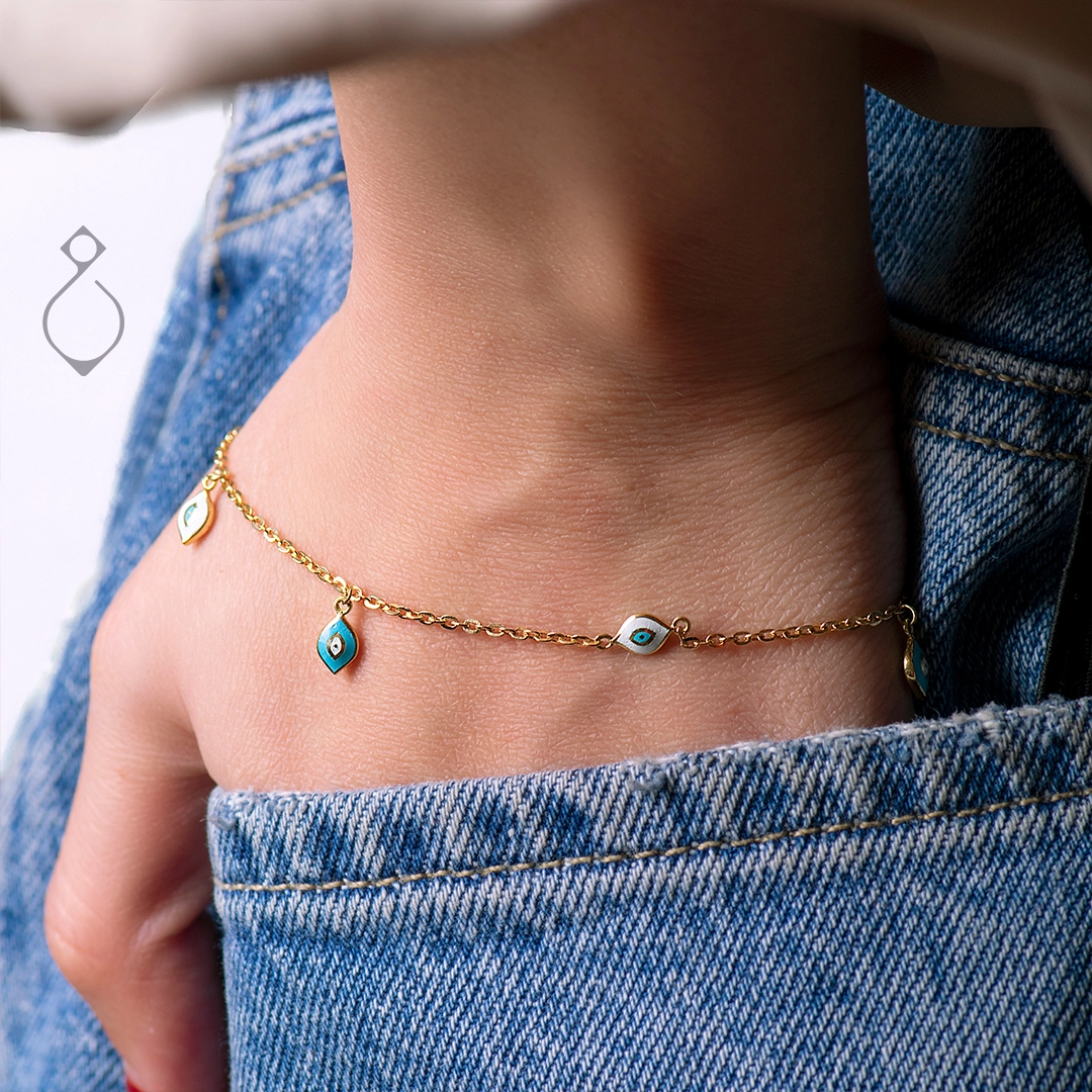 دستبند ظریف طلا طرح چشم نظر کد 114