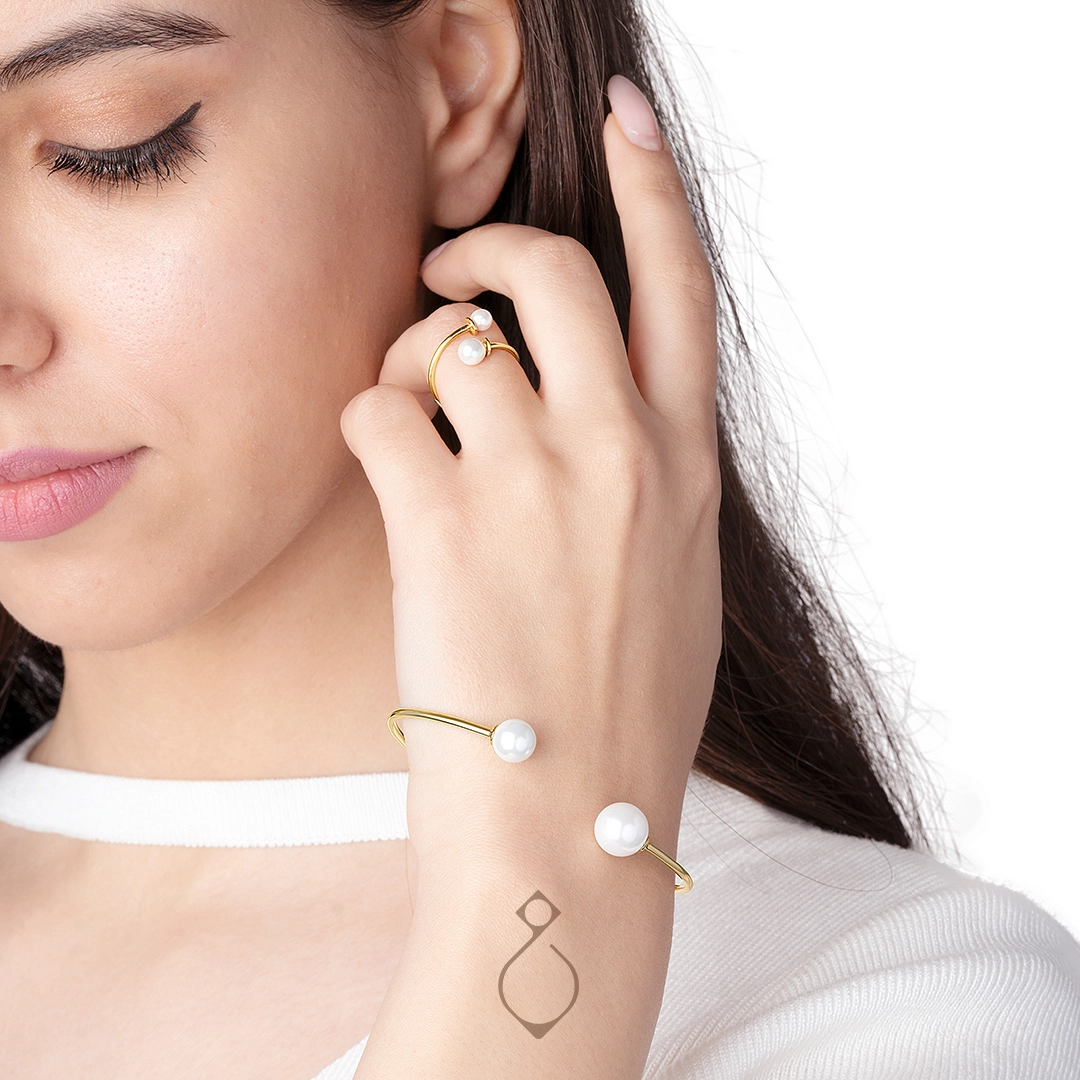 دستبند النگویی طلا طرح دومروراید کد 123 عدد